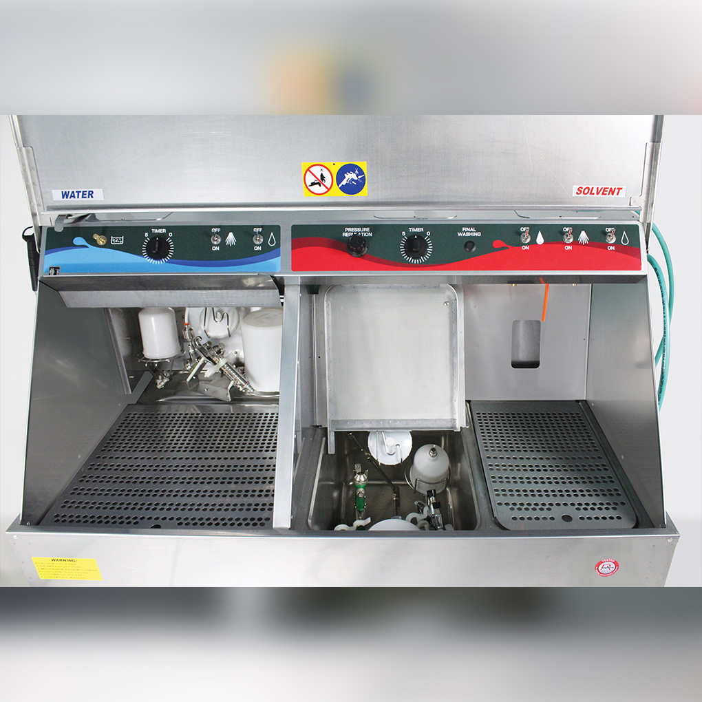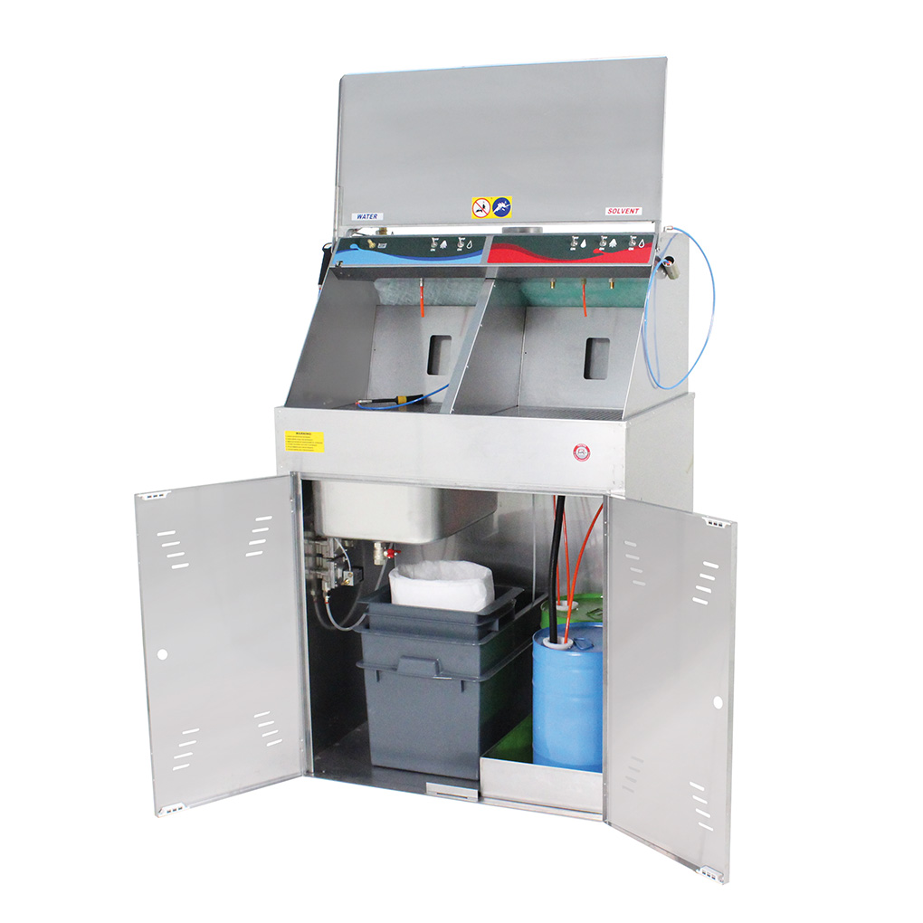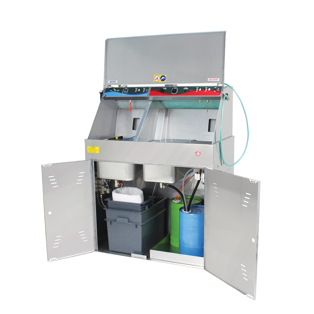 - Kombiniert automatisches und manuelles Waschen mit Lösungsmittel sowie manuelles Waschen mit Wasser